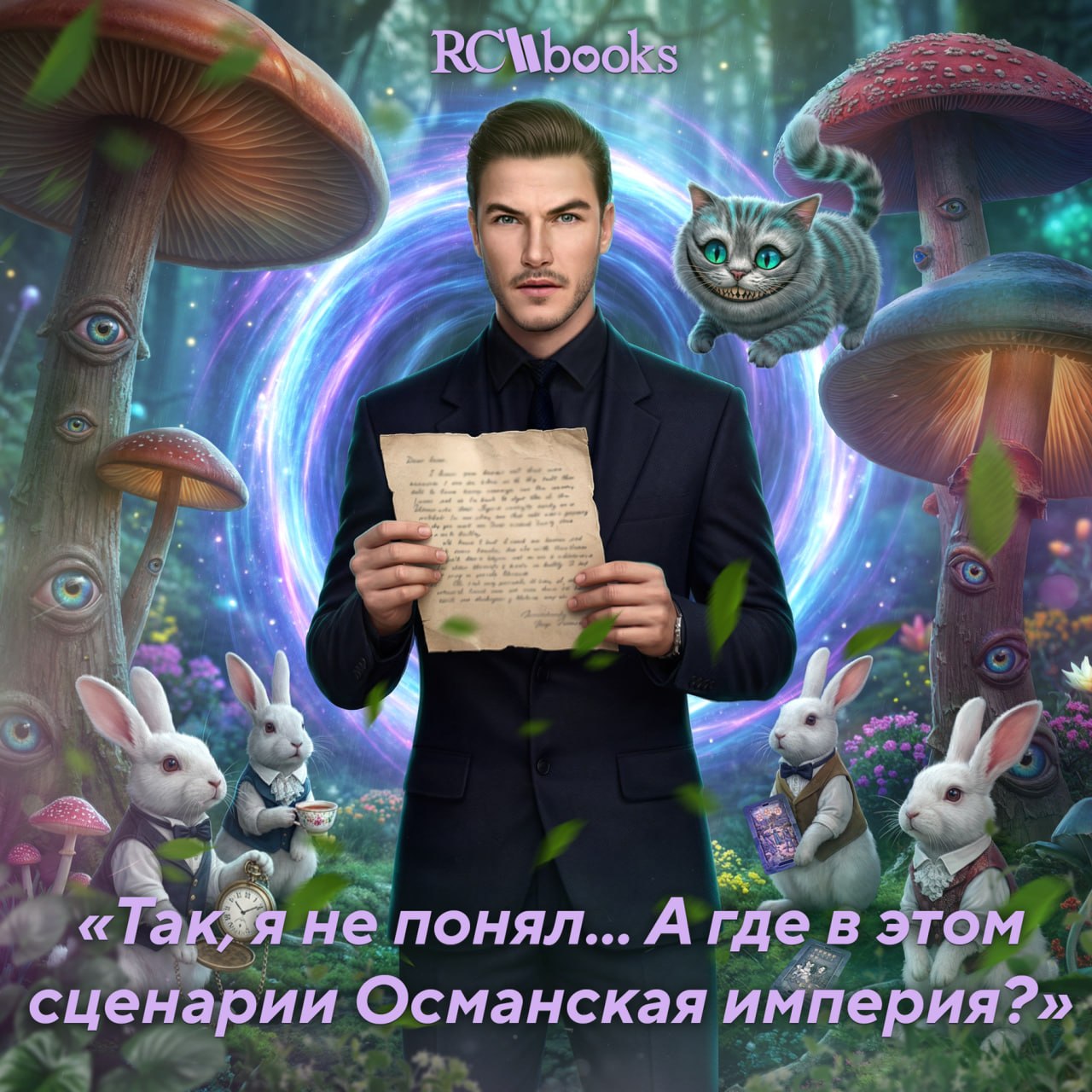 🦇Начнём с Влада. Его забросило в наиболее причудливую обстановку — в один из возможных миров Арканума, в котором по воле фантазии нашего автора Тамары Ашхен расцвела самыми психоделическими красками Страна Чудес с Алисой, Белым Кроликом, Чеширским Котом.