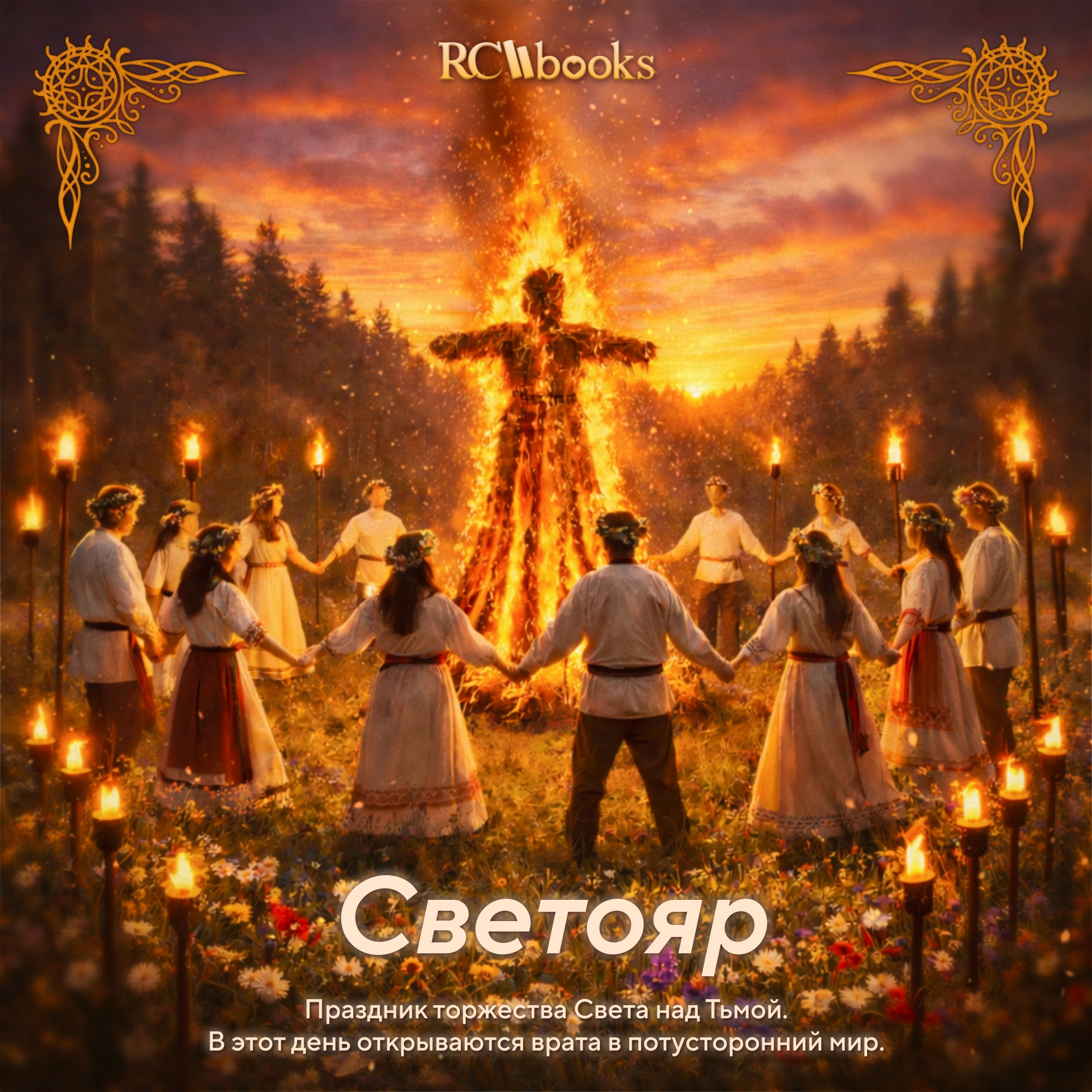 На наших карточках — только искры Светояра: само празднование и его апогей, и в роли Светлой Королевы — Лайя в короне из солнечных лучей. На нашем сайте — вся праздничная ночь и горячая, как костры, романтическая сцена между Лайей и Владом. ❤️🔥