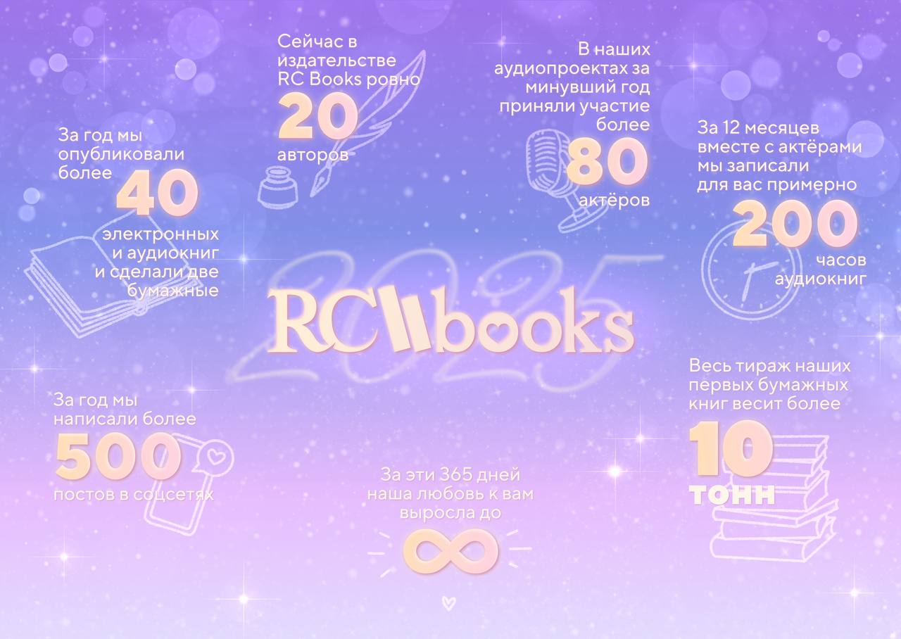 В этих нескольких числах — целый год работы, тысячи часов и сотни дней, из которых мы понемногу строим — с вашей поддержкой — книжную вселенную RC Books. 💪